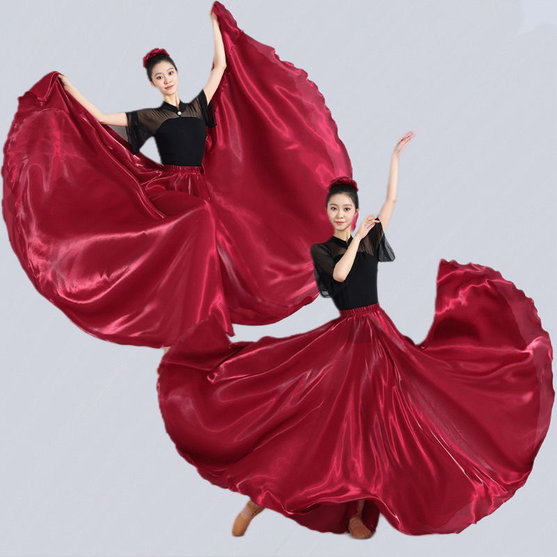 Rok Setengah Badan Besar Permukaan Satin 720 Berkilau Gaun Latihan Pertunjukan Tari Modern Xinjiang untuk Wanita Tarian Ealit Klasik