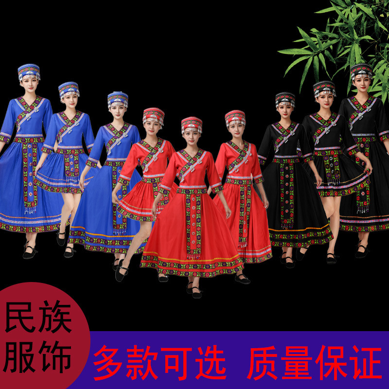 Kostum Pertunjukan Miao Baru Guangxi Zhuang Tiga Maret Kostum Etnis Yao Wanita Dewasa Kostum Tari Etnis Yi