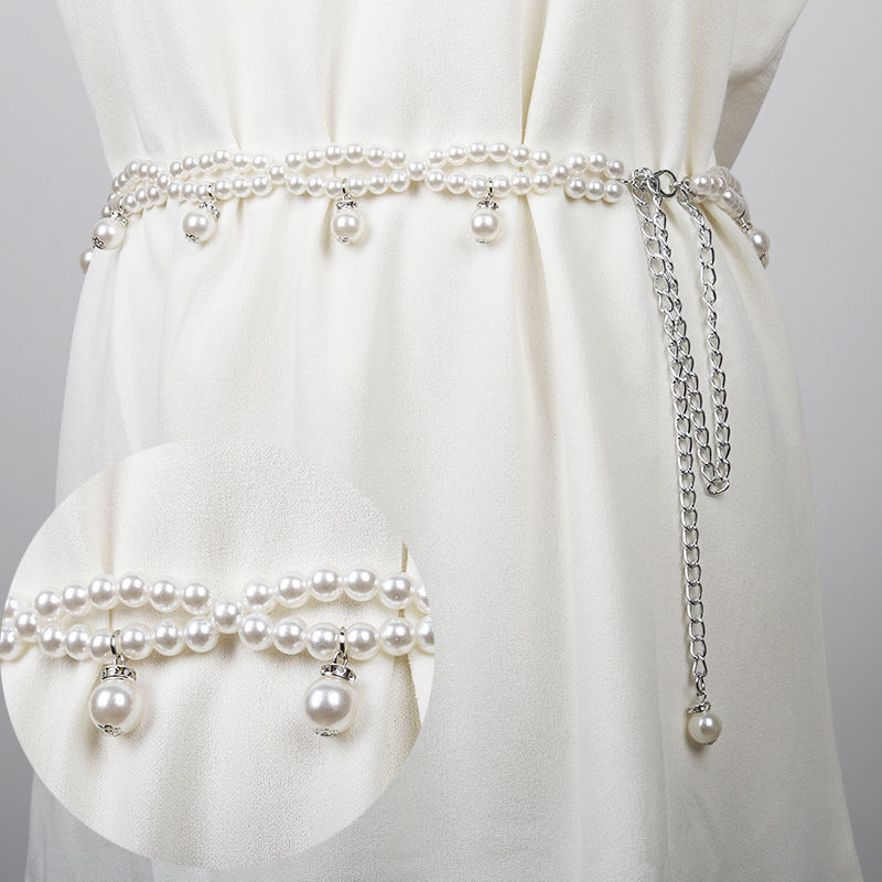 Sabuk wanita rantai pinggang mutiara, sabuk rok rantai tari perut, sabuk dekorasi liontin rumbai mutiara sederhana Eropa dan Amerika