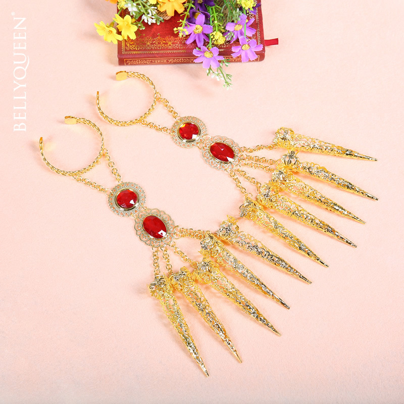 Bellyqueen perhiasan tangan Guanyin ribu tangan tari kuku panjang emas perhiasan tangan tari india Set jari
