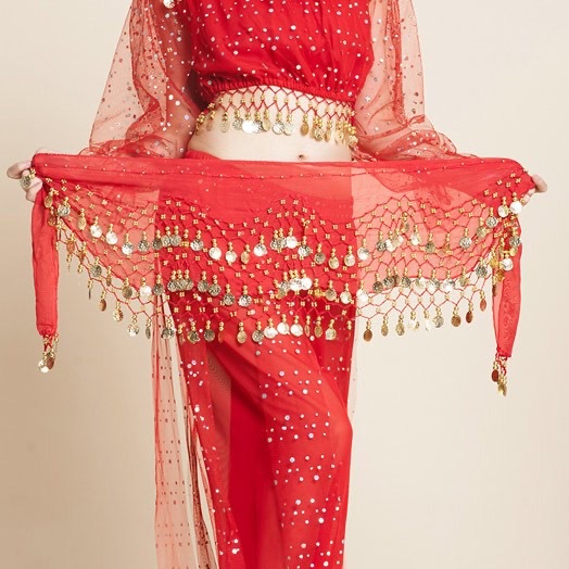 Rantai pinggang tari perut baru aksesoris handuk pinggang sabuk performa handuk pinggang segel pinggang pemula 98/128 koin
