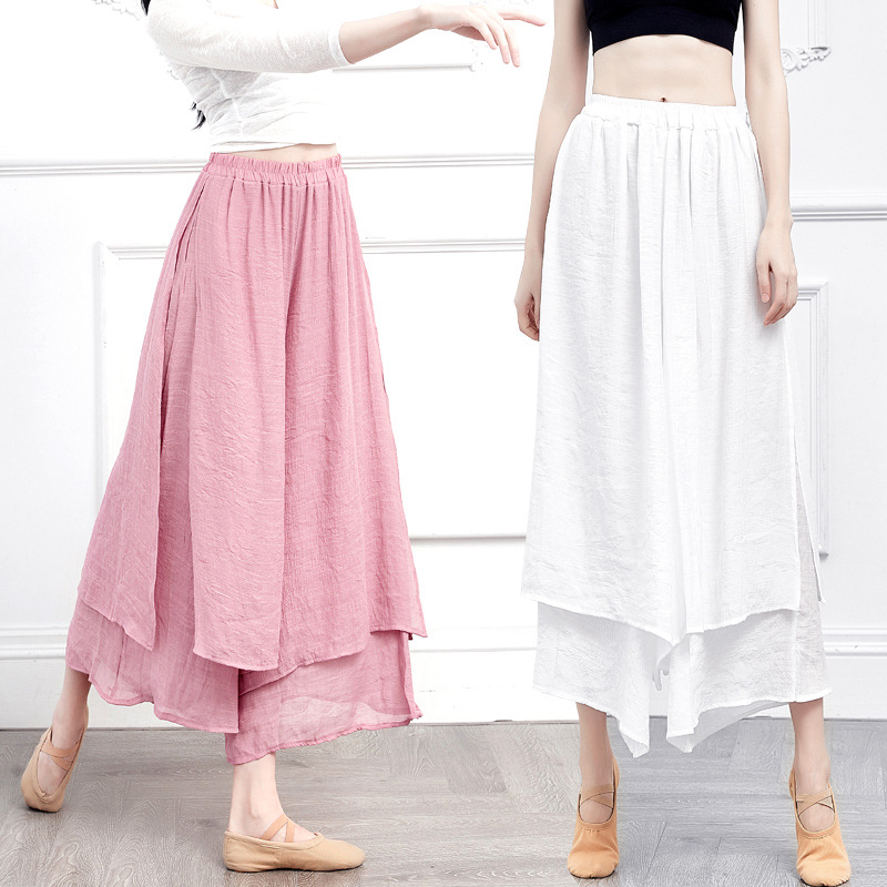 Celana kaki lebar dansa seni musim gugur pakaian latihan yoga longgar klasik wanita dewasa celana tari modern celana lurus besar
