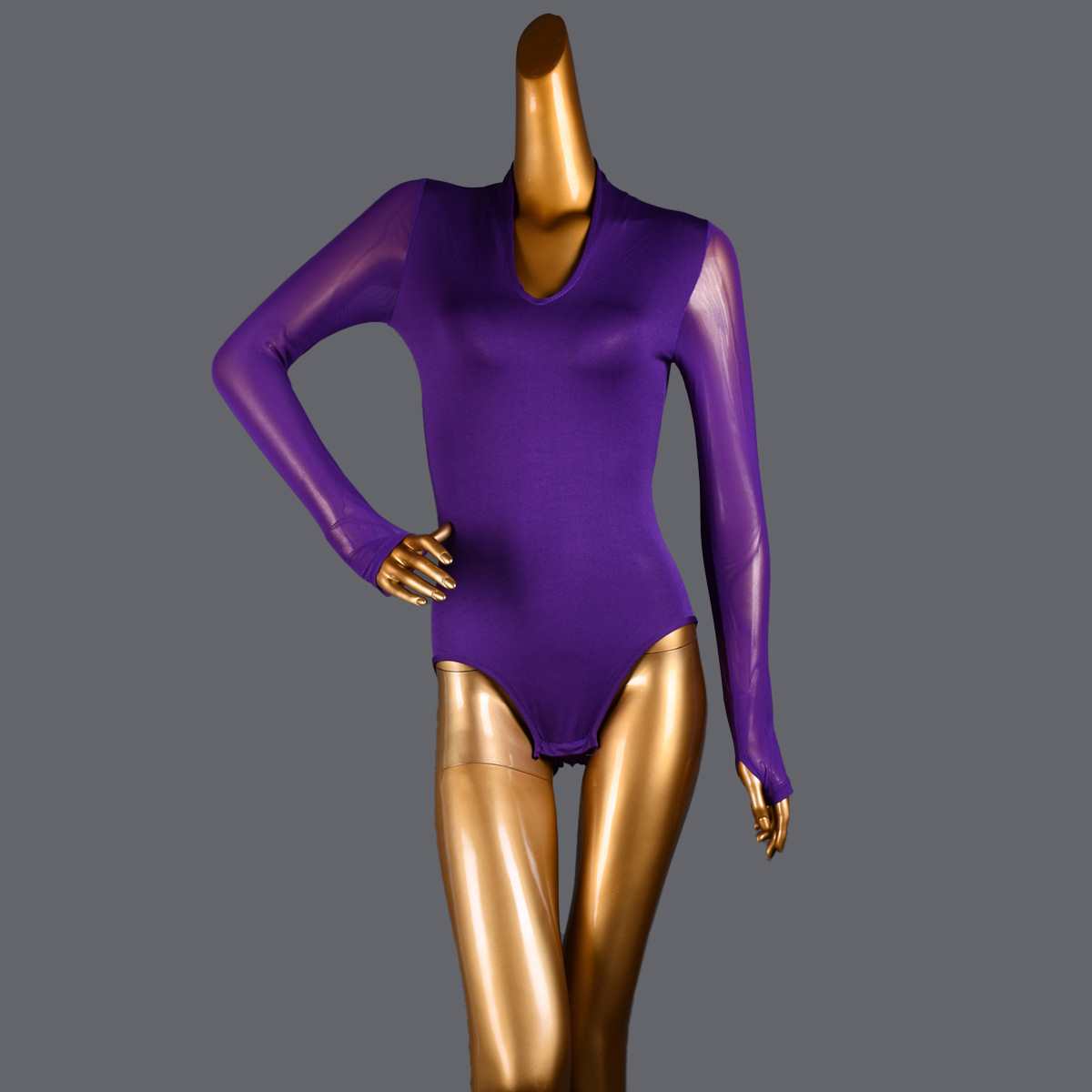 Pakaian dansa Latin wanita, baju latihan dewasa, setelan badan, baju kait lengan panjang, leher V, pakaian kompetisi, pakaian dansa Latin