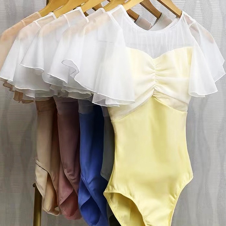 Pakaian Tari Maiyuan Pakaian Ketat Pakaian Latihan Balet Dewasa Wanita Pakaian Jumpsuit Tari Lengan Pendek Pakaian Senam Tubuh