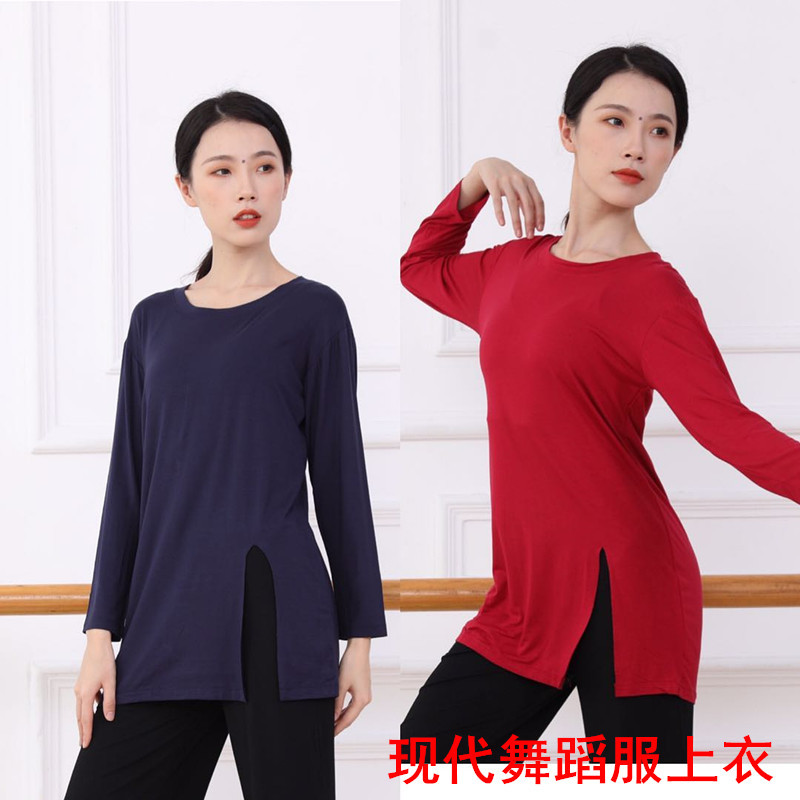 Pakaian dansa wanita lengan panjang, pakaian latihan tari modern lengan panjang ketat longgar atasan lengan panjang
