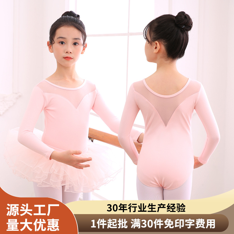 Grosir pakaian dansa anak-anak musim semi dan musim gugur rok balet anak perempuan lengan panjang baju latihan gaya rok tari Cina