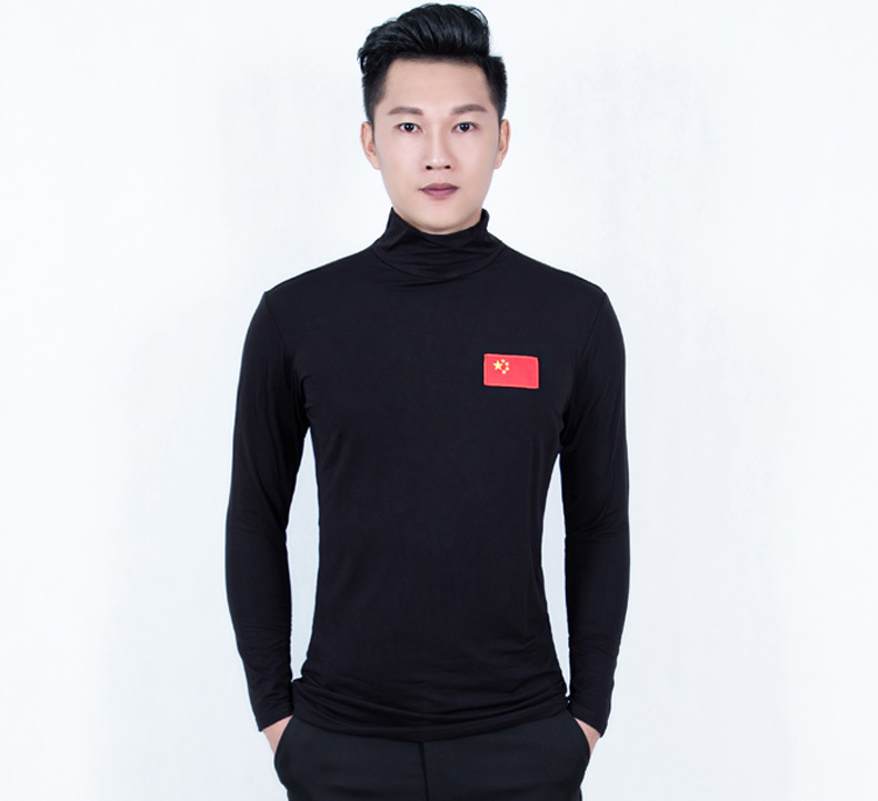 Baju dansa pria, pakaian latihan tari Latin, tari modern, atasan standar nasional, pakaian kompetisi, bendera lengan panjang