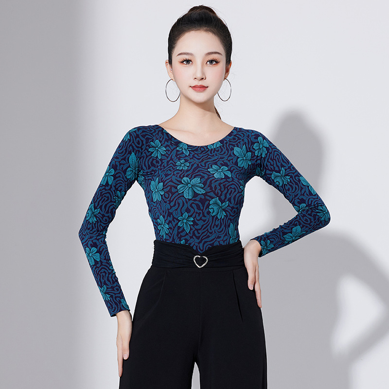 Pakaian Latin Wanita Atasan Pakaian Latihan Dansa Model Baru Musim Panas Pakaian Dansa Modern Lengan Panjang Pakaian Dansa Tari Ballroom Atasan