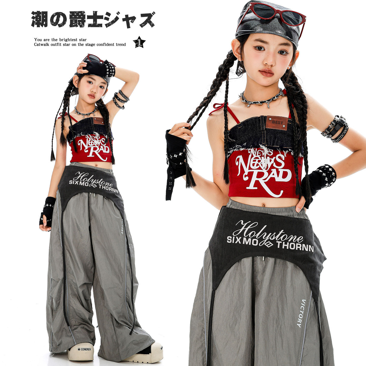女童爵士舞服装女孩jazz演出服女生直筒卫裤套装儿童嘻哈街舞潮服