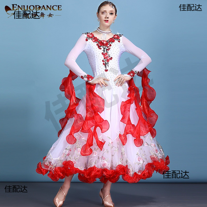 Gaun dansa modern berlian tertanam gaun ayun besar kostum performa gaun kompetisi dansa standar nasional rok dansa ballroom waltz 081