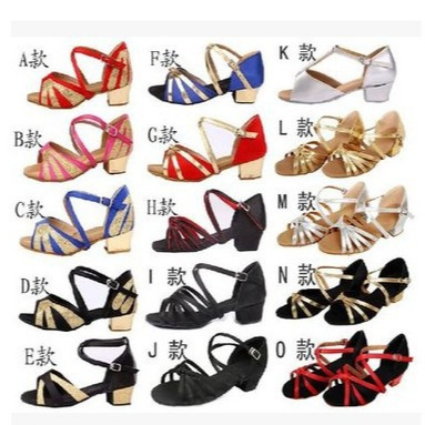Sepatu dansa Latin anak perempuan, sepatu dansa hak sedang, sepatu dansa persegi tahan aus, sepatu dansa standar nasional untuk anak perempuan