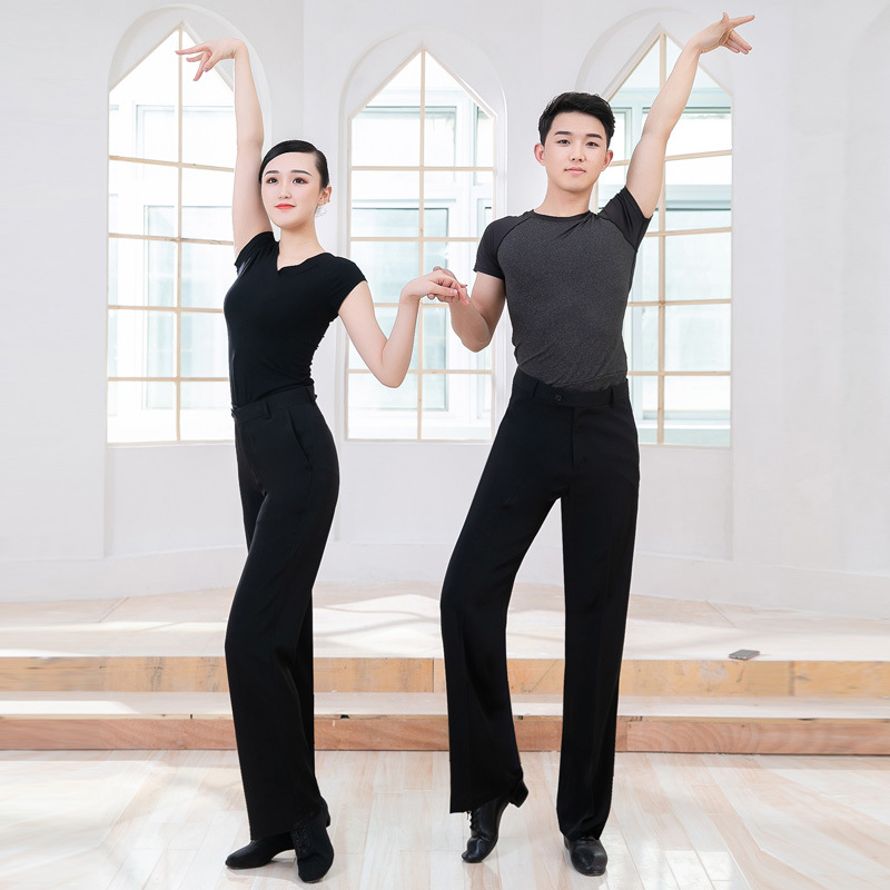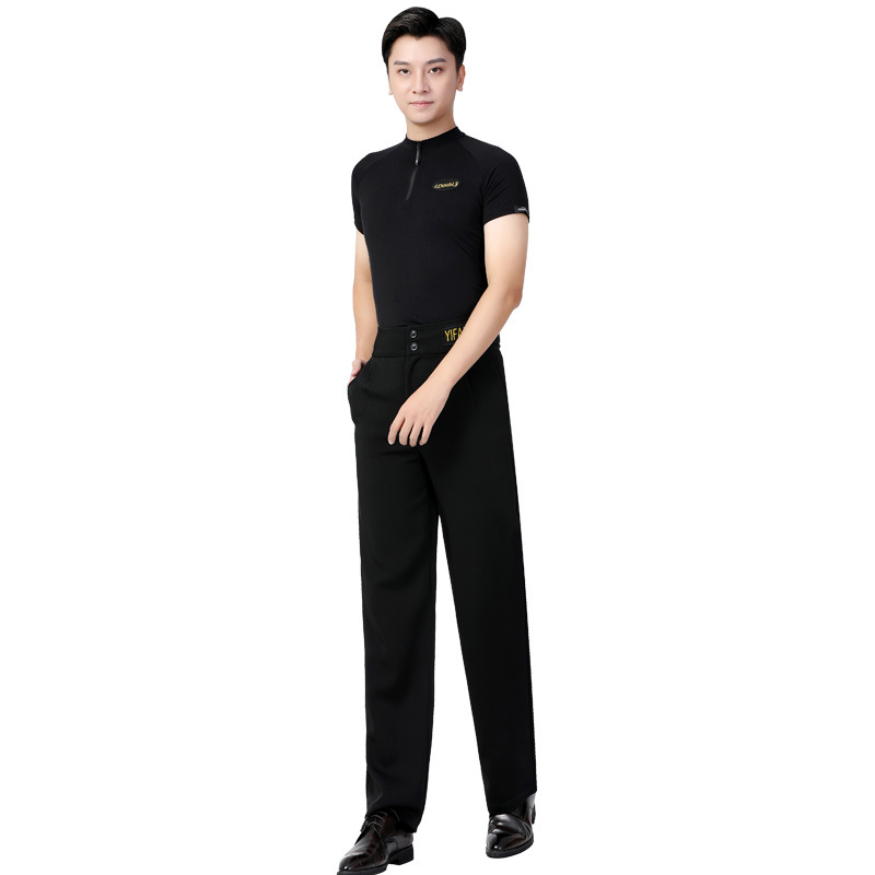 Celana dansa pria, celana tari modern, celana dansa lurus hitam profesional, celana persegi tipis