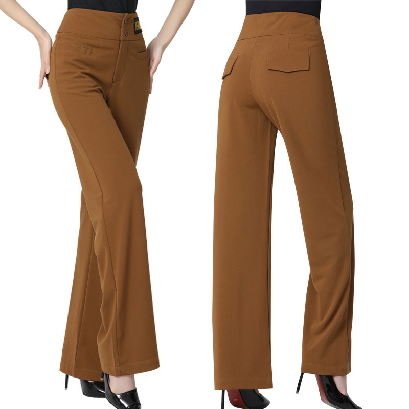 Celana dansa standar nasional wanita, celana wanita tari modern, celana dansa ballroom, celana latihan pinggang tinggi lurus