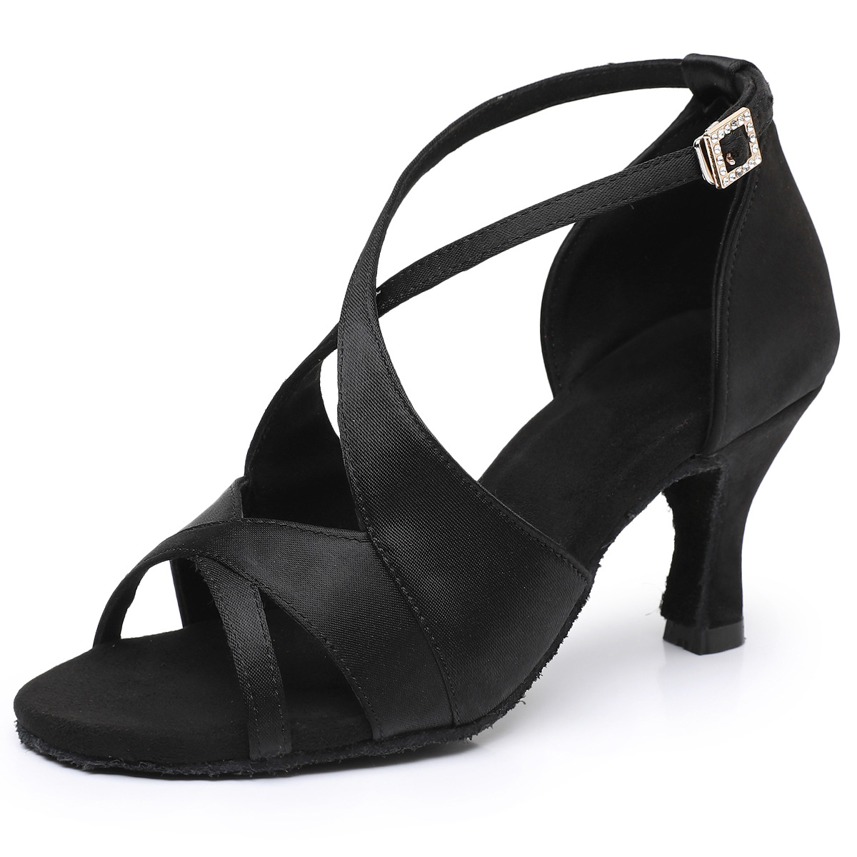 Sepatu dansa Latin hak tinggi wanita, gesper berlian sutra modern, sepatu dansa standar nasional, sepatu dansa sol lembut versi Perdagangan Luar Negeri