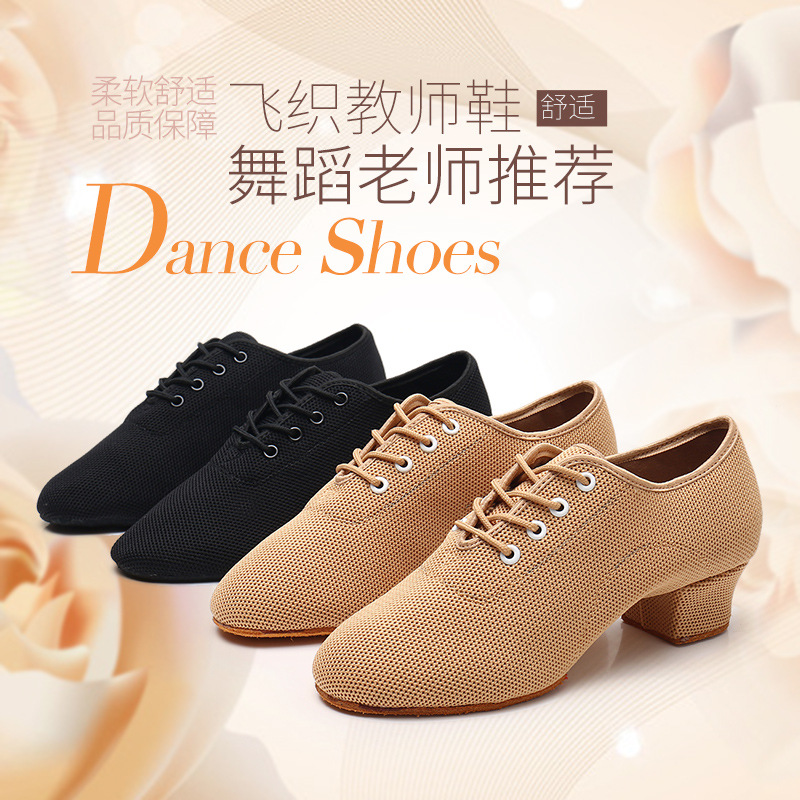 Sepatu dansa Latin wanita, sepatu kain tenun ringan, sepatu latihan dansa hak tinggi, sepatu dansa standar nasional, sepatu guru dansa jazz