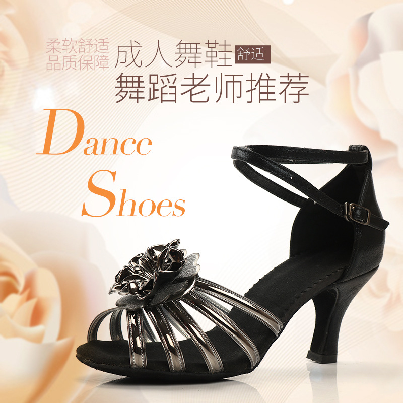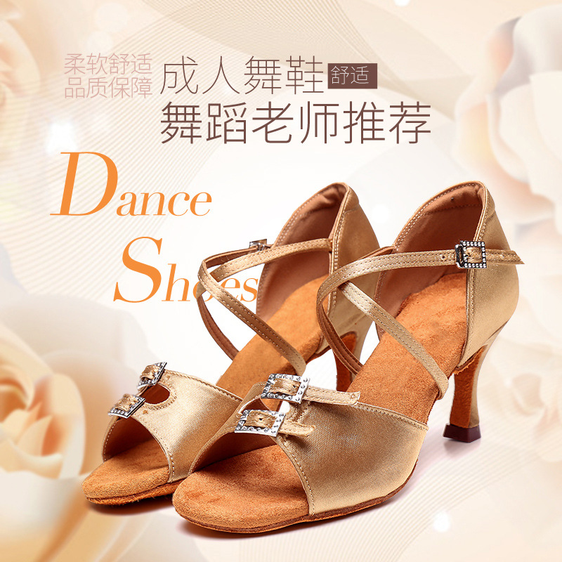 Sepatu dansa Latin wanita, sol lembut dalam ruangan sepatu dansa hak tinggi hak sedang sepatu dansa standar nasional dewasa