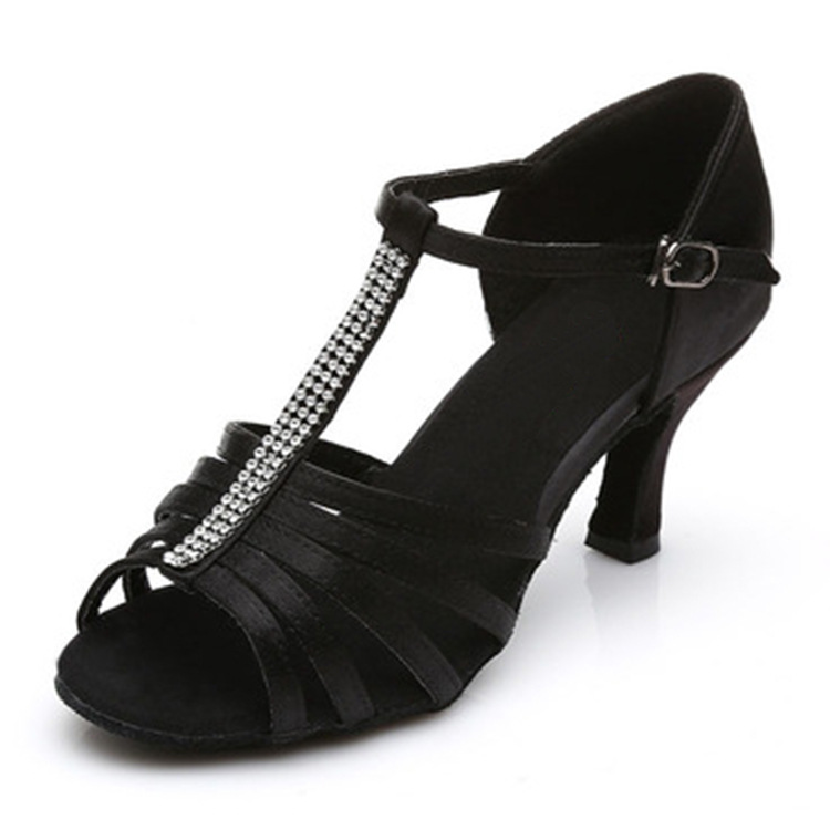 Sepatu dansa latin untuk wanita, sepatu dansa hak tinggi tali T sutra profesional, sepatu latihan dansa standar nasional, sepatu dansa anak-anak di luar ruangan