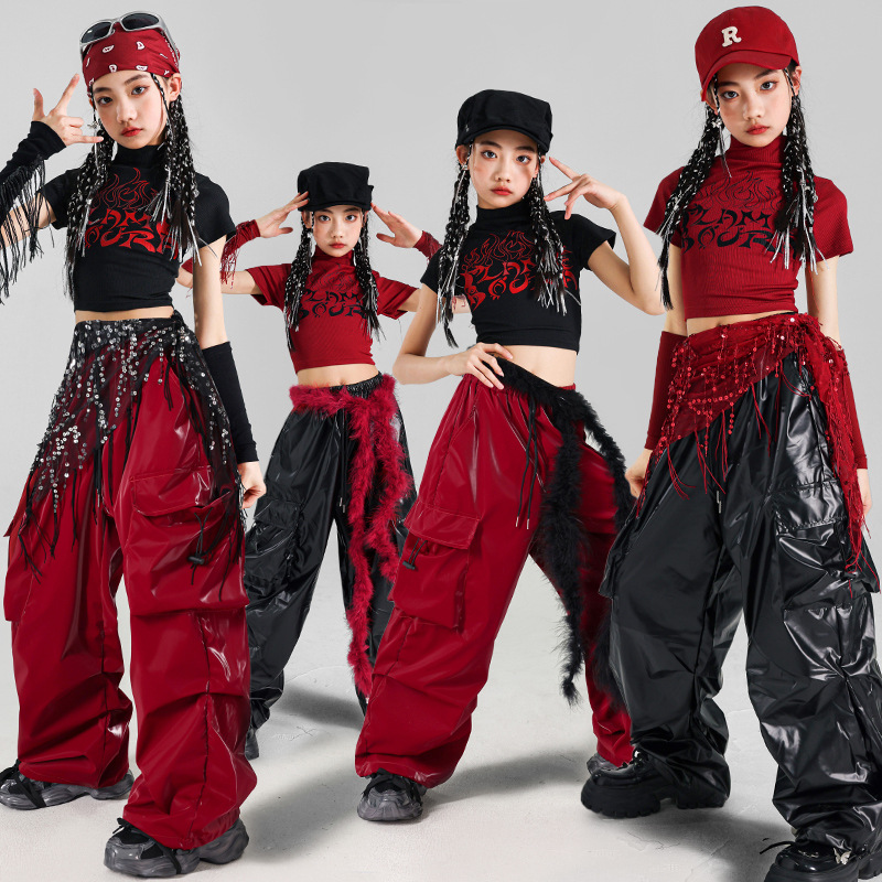 Pakaian tari jazz anak perempuan, setelan anak-anak, kemeja anak laki-laki, pakaian pertunjukan tari jalanan hip-hop, pakaian pertunjukan trendi