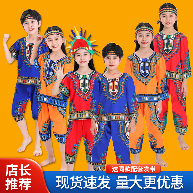 Pakaian Pertunjukan Enam Puluh Satu Anak Pakaian Pertunjukan Drum Afrika Gaya Etnik Taman Kanak-kanak Lijiang Tarian Klasik Drum Rebana