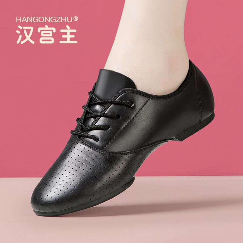 Sepatu dansa Latin pria Sol empuk kulit sapi bawahan standar nasional ujian anak perempuan dengan lubang udara kain Oxford kotak asli modern