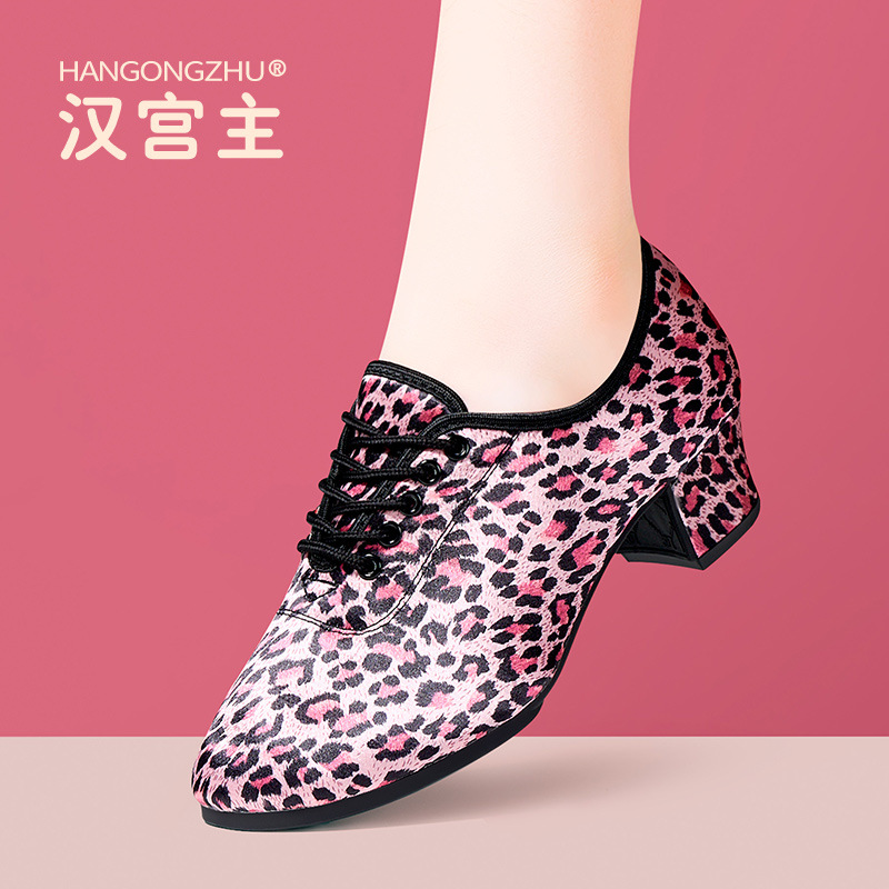 Sepatu dansa Latin wanita, alas kaki guru sol lembut, sepatu dansa persegi untuk dewasa, sepatu dansa hak chunky sedang, sepatu dansa standar nasional