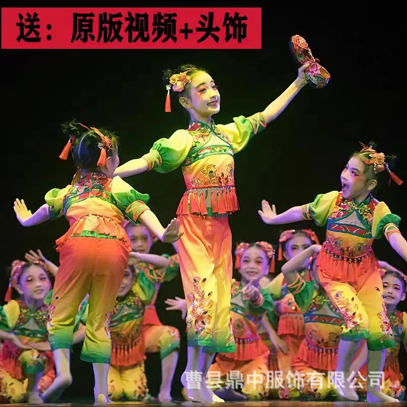 六一儿童喜庆演出服中国风民族舞蹈服装新款幼儿开门红女童打鼓服
