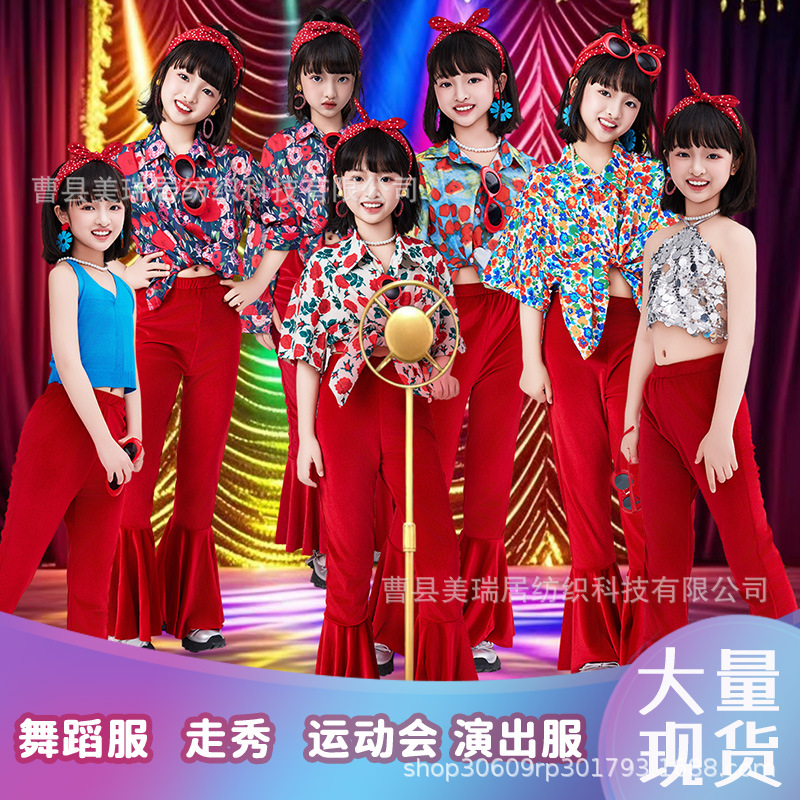 Fashion pakaian anak-anak Korea Selatan, hip hop anak-anak, pakaian penampilan longgar hip hop, pakaian penampilan jazz, setelan anak-anak besar dan menengah