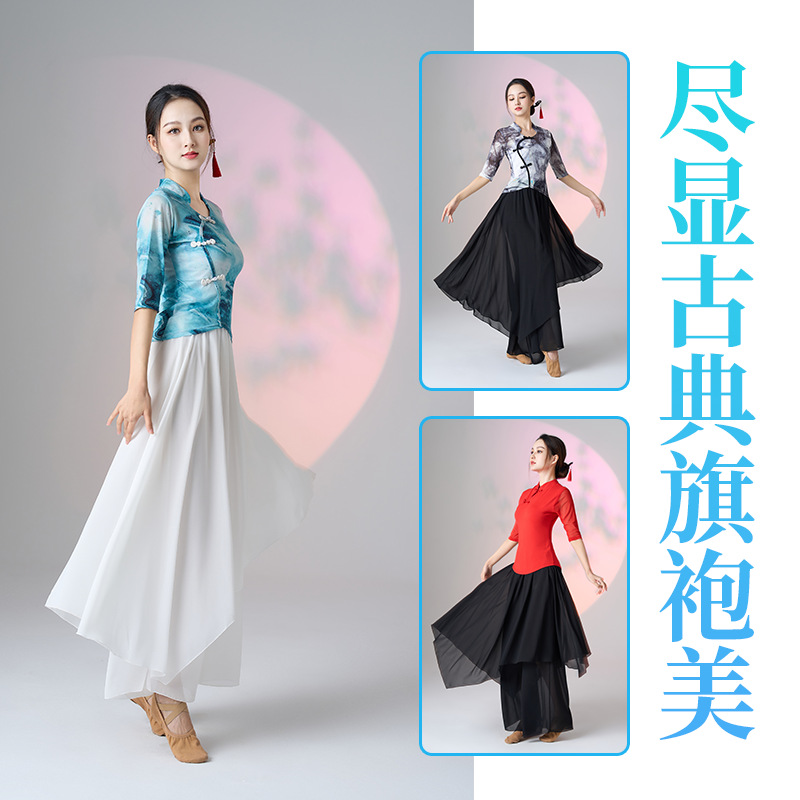 Pakaian dansa persegi baru musim semi dan musim panas mode nasional tari klasik latihan tari etnik pakaian jala kulot panjang setelan performa