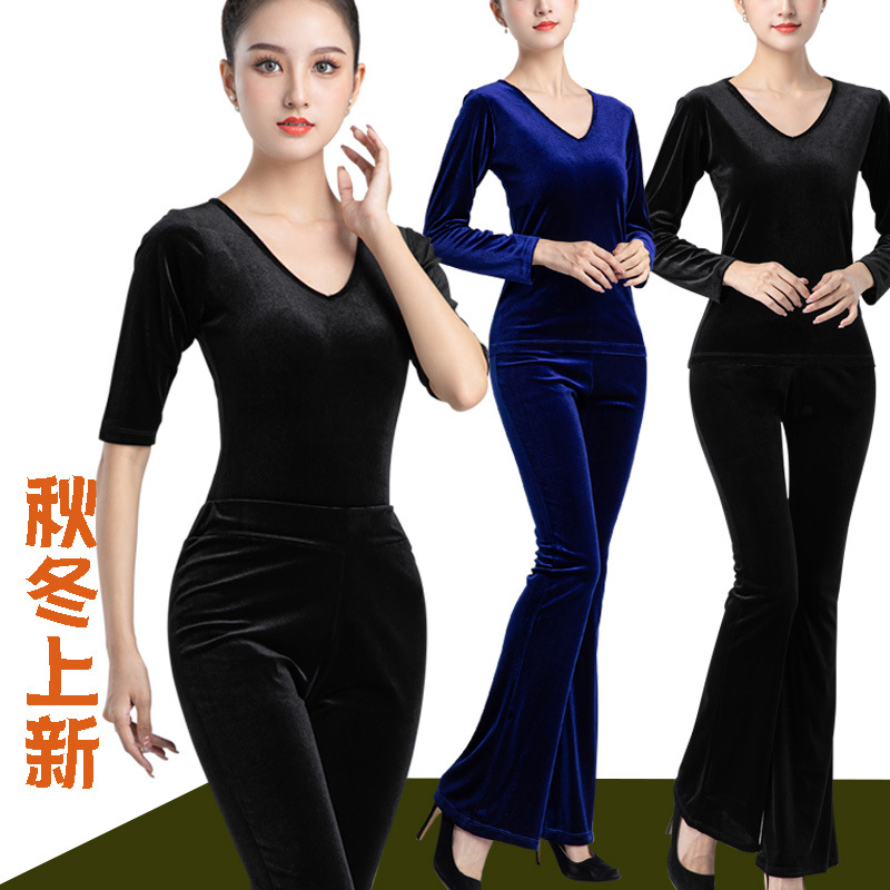 Pakaian latihan dansa kerah V setelan wanita celana dansa Atasan Dewasa celana kaki lebar tari Tiongkok tubuh pelajar tari modern