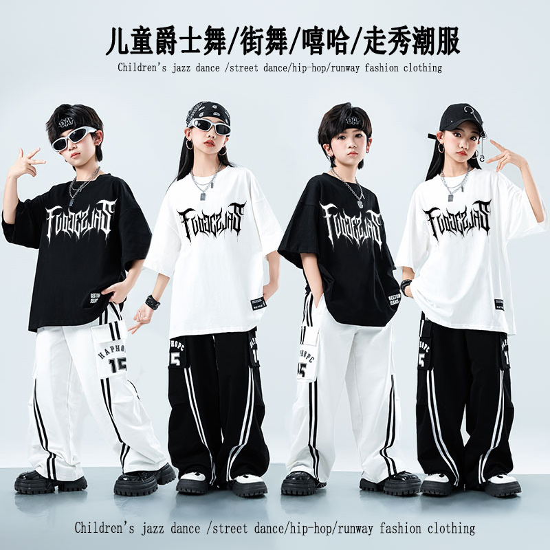 Kostum dansa anak perempuan, kostum pertunjukan hip hop Jepang tampan, kostum mode panggung, kostum hiphop anak-anak
