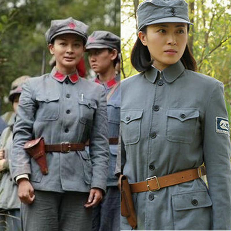 Baju Tentara Merah orang dewasa, kostum pertunjukan tentara seniman, katun tentara dan linen, seragam militer lama, kostum pelindung merah anti-jepang