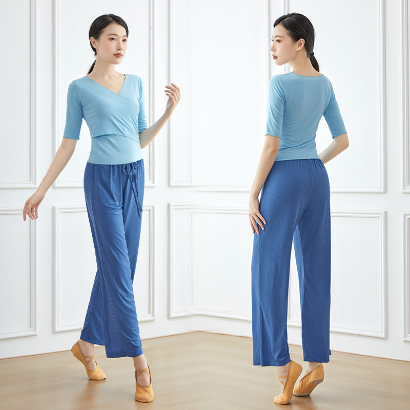 Pakaian dansa klasik dewasa, baju celana kaki lebar, pakaian latihan dansa modern, pakaian pelangsing 2024