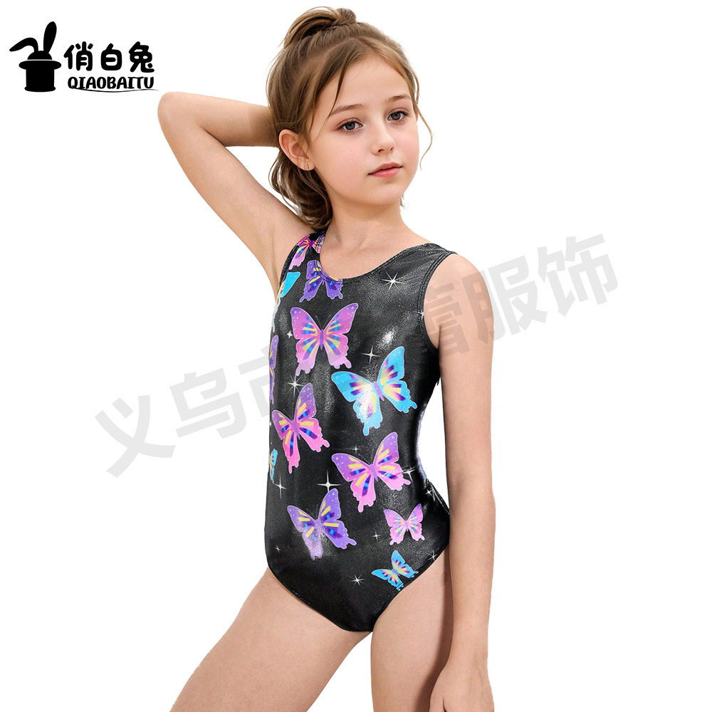 Pakaian Latihan Anak Lintas Batas Pakaian Latihan Anak Perempuan Rompi Cetakan Emas Berbentuk Bunga Kupu-kupu Bertingkat Tinggi Pakaian Senam Eropa dan Amerika