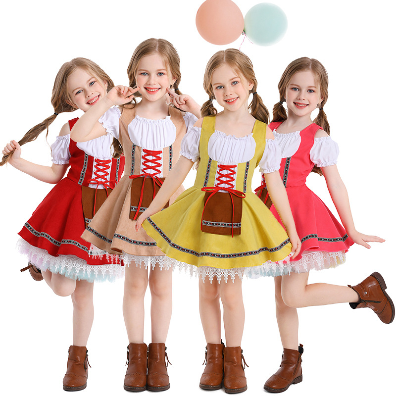 Pakaian Halloween Pasokan Perdagangan Luar Negeri Amazon Jerman Pakaian Pertunjukan Liburan Bir Anak-anak Rok Pendek Multi-Warna