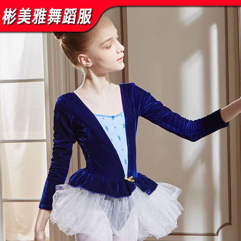 Baju latihan anak perempuan, baju dansa anak-anak, baju senam lengan panjang, jumpsuit anak perempuan musim gugur dan musim dingin