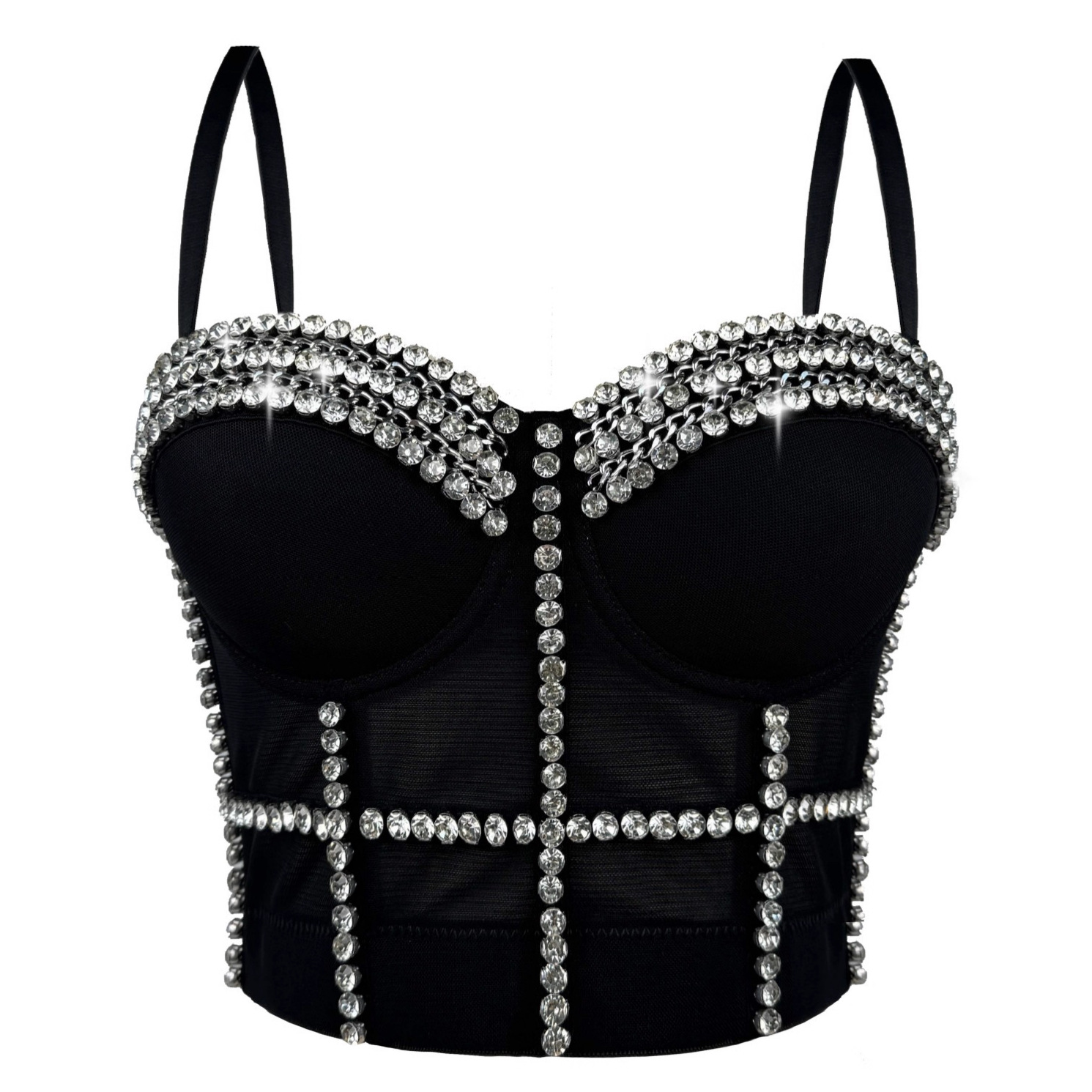 Pakaian dalam wanita model korset pelangsing gaya hip-hop Eropa dan Amerika, berhias manik-manik dan rhinestone, model kamisol, pakaian pertunjukan selebgram.