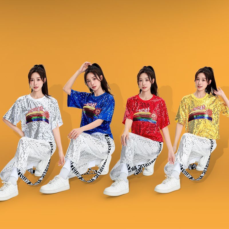 Pakaian Cheerleader Berpayet Setelan Wanita Tarian Tari Jazz Hip Hop Siswa Dewasa Setelan Pertunjukan Tari Jalanan Modern