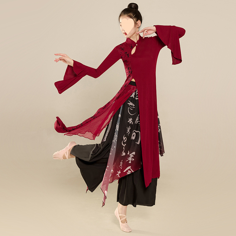Pakaian Tari Klasik Model Baru Pakaian Latihan Cheongsam Kombinasi Cetak Ealit Pakaian Tari Pertunjukan Nasional Tiongkok Pakaian Tari Wanita