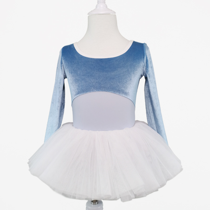 Pakaian dansa anak, baju dansa plus setelan beludru musim dingin lengan panjang pakaian latihan penampilan biru rok kasa rok balet dewasa