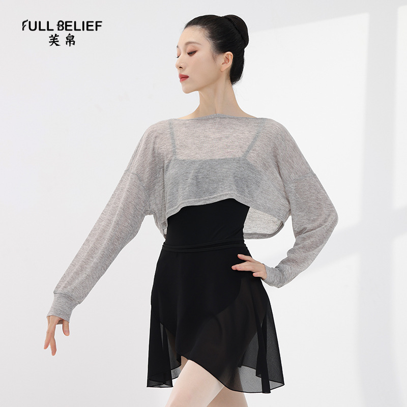 Fuxi pakaian dansa balet wanita lengan panjang, blus pakaian pertunjukan pakaian senam tubuh pakaian latihan dewasa atasan rajut