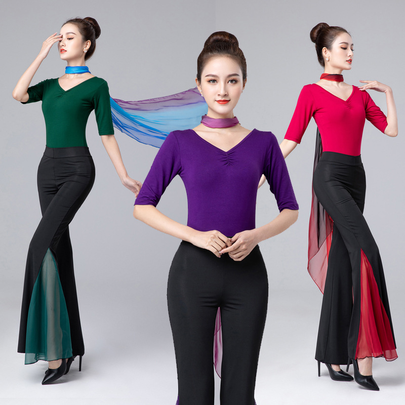 Pakaian latihan dansa Modern setelan wanita pakaian menari klasik atasan latihan tubuh tari nasional Cina dewasa