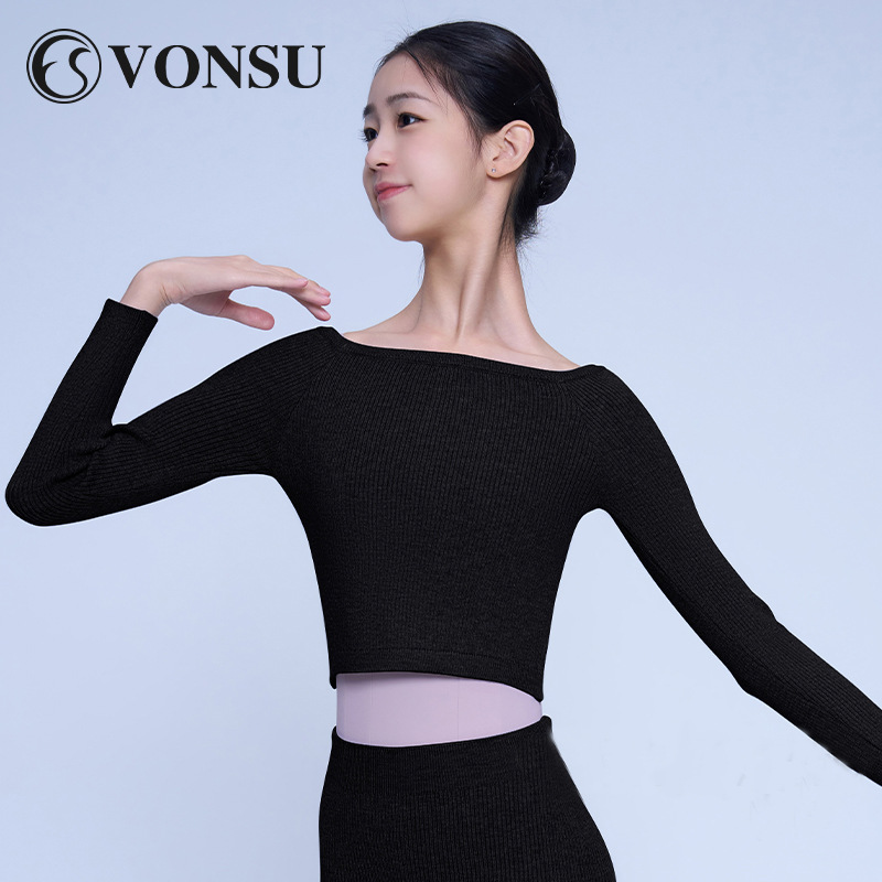Fanshu Sweater Tari Musim Gugur dan Musim Dingin Atasan Pakaian Latihan Balet Kerah Huruf Jari Pakaian Luar Lengan Panjang Wanita Dewasa