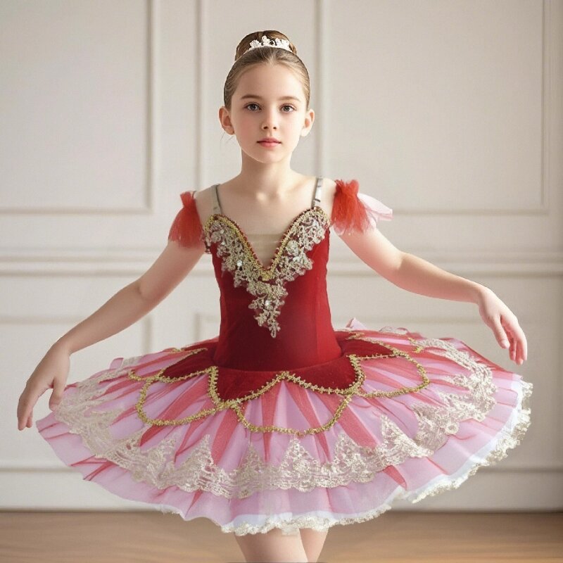 Pakaian dansa anak, baju dansa, baju rok balet, baju latihan dansa China, pakaian musim panas
