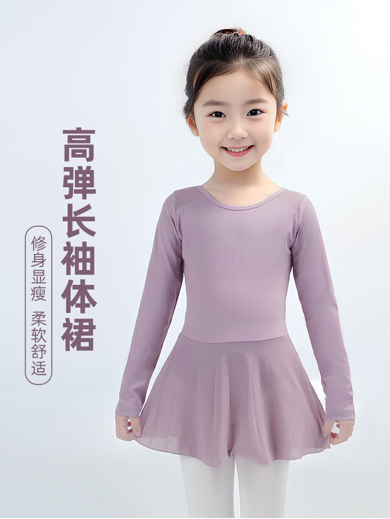Pakaian dansa anak perempuan, rok balet lengan panjang, pakaian anak perempuan, baju latihan dansa China, pakaian penampilan