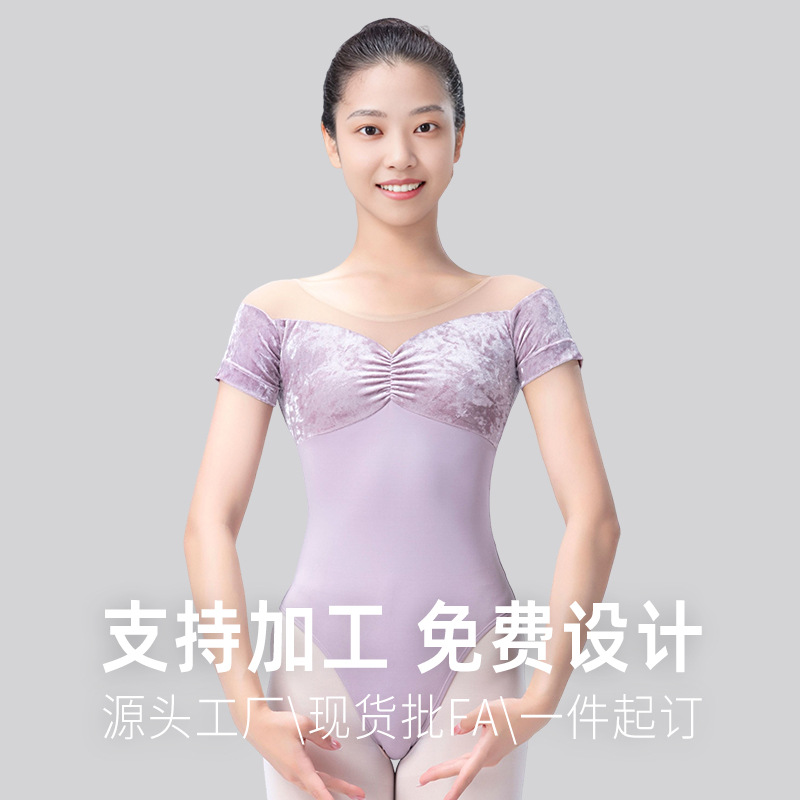 Pakaian Tari Pakaian Latihan Musim Gugur dan Musim Dingin Sambung Beludru Pakaian Bentuk Balet Tari Tiongkok Lengan Pendek Slim Fit Pakaian Yoga Dewasa