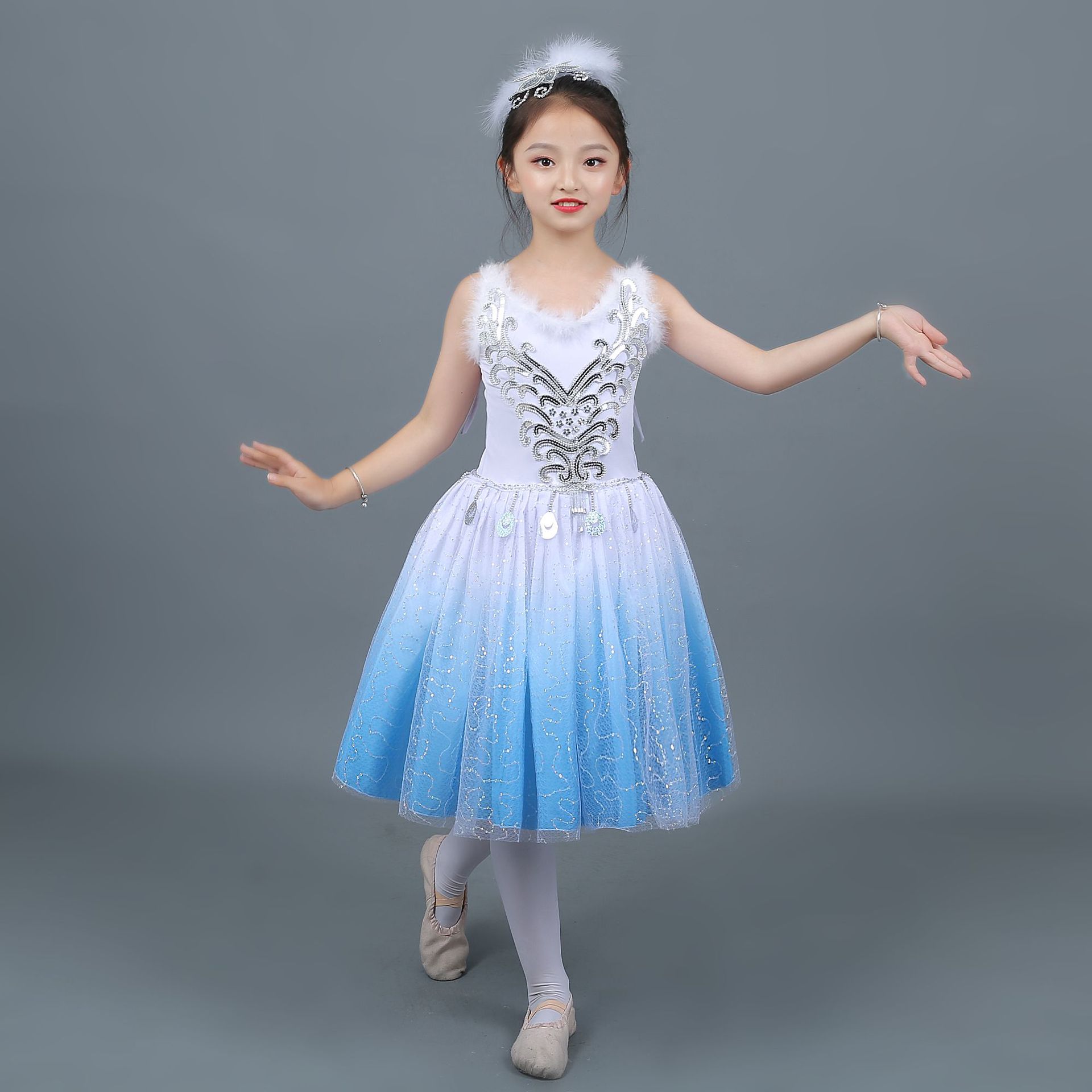 Rok balet anak perempuan high-end, kostum dansa angsa danau profesional variasi burung kecil