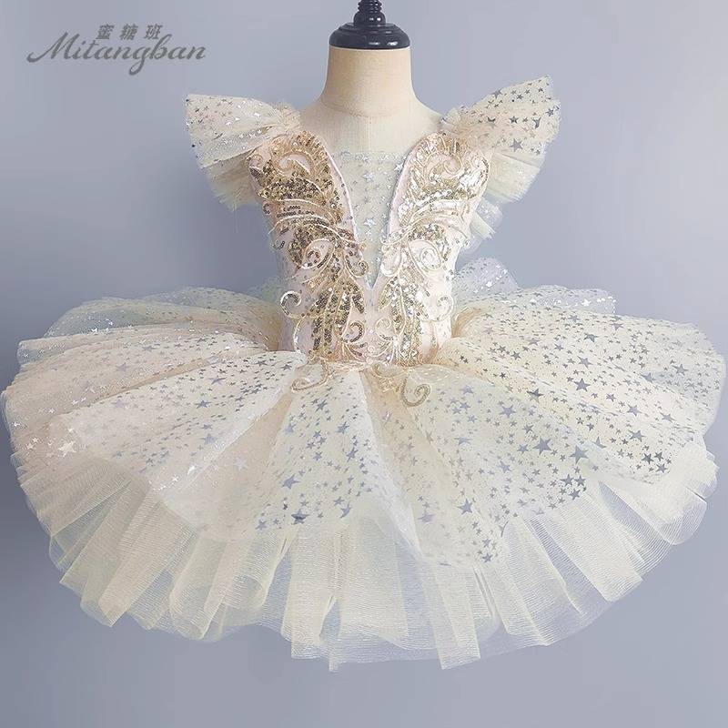 Rok Balet Profesional Anak Perempuan Swan Kecil Payet Putri Mengembang Rok Lucu Pertunjukan Panggung