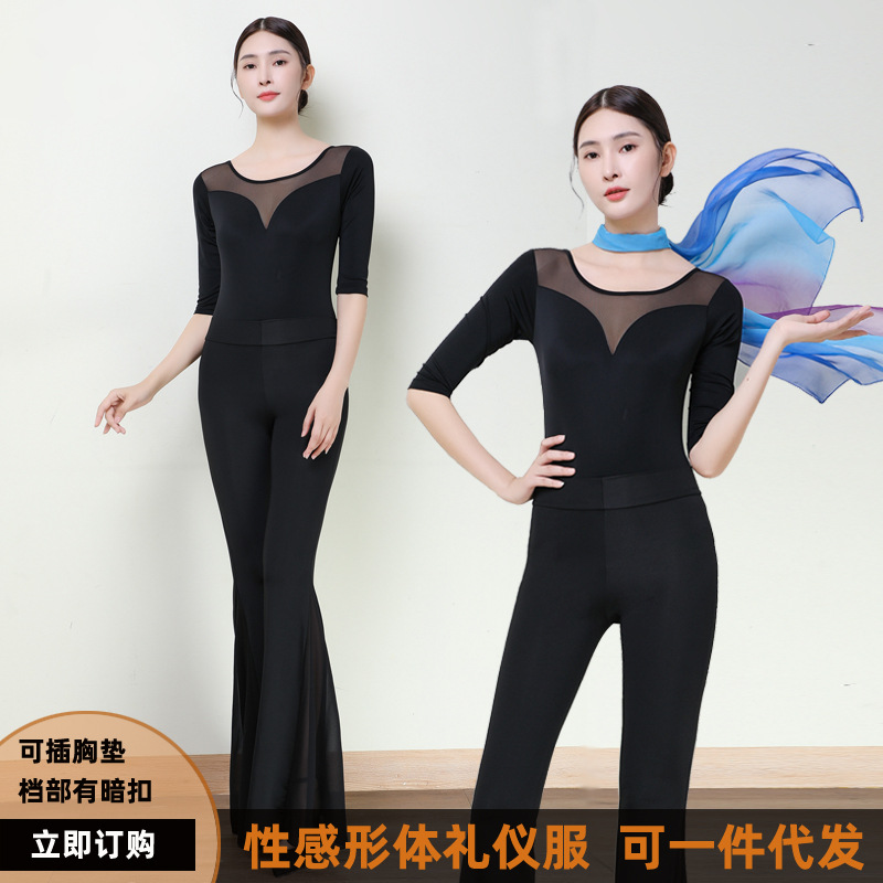 Setelan Badan wanita dewasa, pakaian latihan penampilan elegan catwalk, model Guru latihan, pakaian latihan dansa gabungan