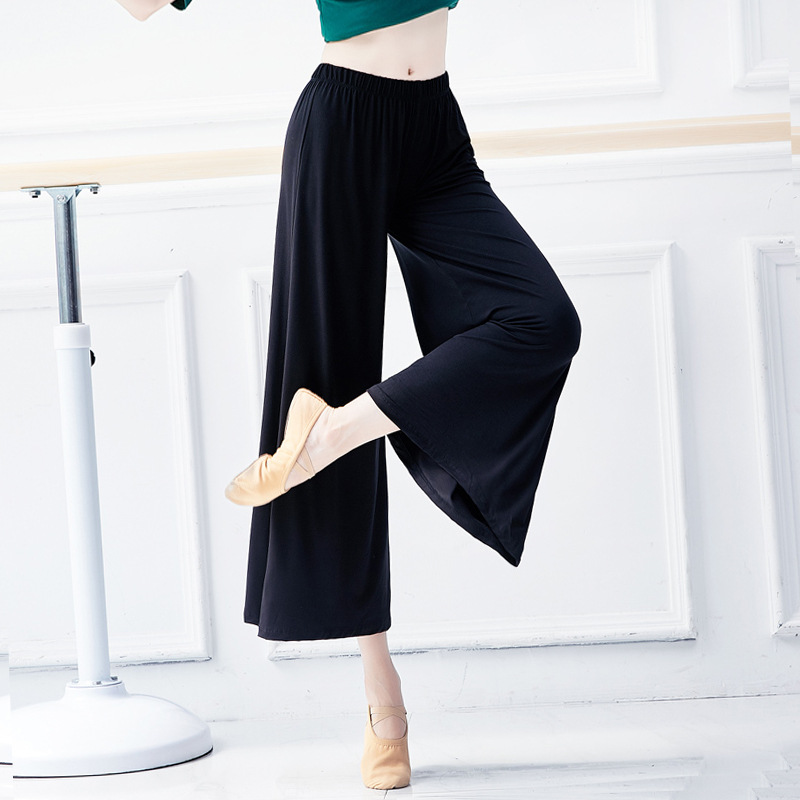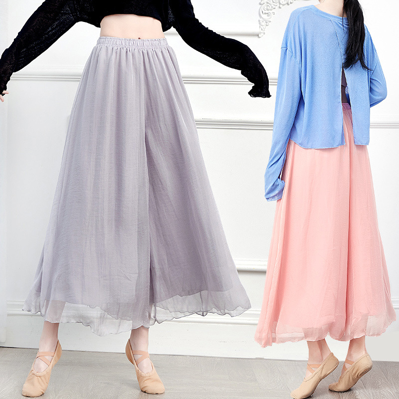 Celana dansa wanita, pakaian latihan tari klasik kulot panjang kaki lebar lapisan ganda gaya jazz etnis Cina elegan modern
