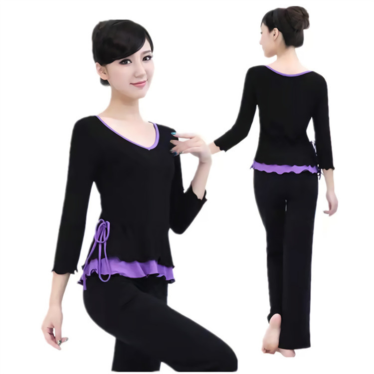 Baru pakaian dansa dalam persediaan wanita dewasa pakaian latihan setelan V-neck modal pelangsing pakaian dansa persegi
